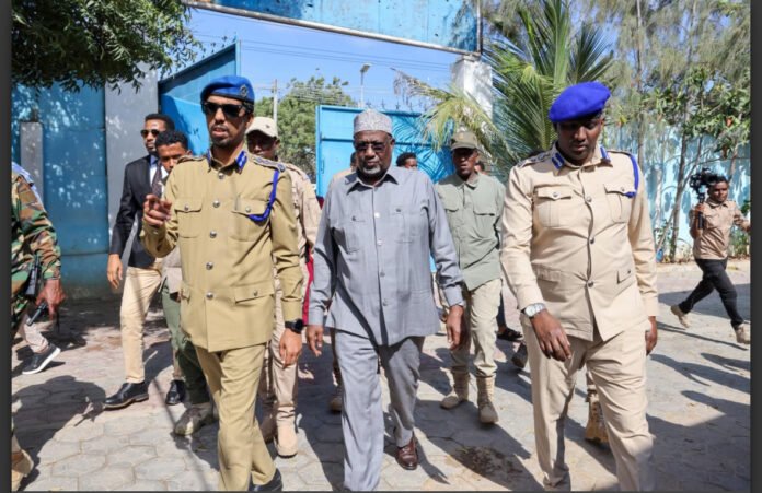 MOGADISHU, (HAN) – The Acting President of Somalia and Speaker of the House of the People, Sheikh Adan Mohamed Nur (Madobe), on Thursday paid an inspection visit to the Warta Nabada District Police Station in Mogadishu, a day after violent clashes erupted there between government forces and opposition-aligned security units.