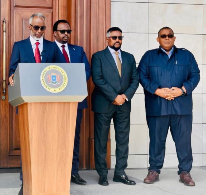 MOGADISHU, (HAN) — Former Somali Prime Minister Omar Abdirashid Ali Sharmarke and ex-Minister Dahir Mohamud Geelle, who are serving as envoys for President Hassan Sheikh Mohamud, are currently engaged in discussions with former Speaker of Parliament Mohamed Mursal Sheikh Abdirahman at his residence in Mogadishu, following a travel blockade that prevented Mursal and a delegation of lawmakers from flying to Baidoa, the capital of South West State.