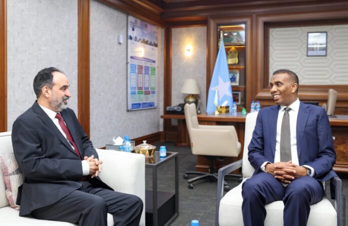 MOGADISHU, (HAN) – The Prime Minister of the Federal Government of Somalia, Hamsa Abdi Barre, held a meeting on Sunday with the Arab League Ambassador to Somalia, Abdalla Oteibi, at his office in Mogadishu. The discussions focused on deepening cooperation between Somalia and member states of the Arab League in the areas of politics, the economy, and security.