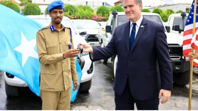 The Commander of the Somali Police Force, General Asad Osman Abdullahi, officially received a fleet of modern military vehicles today donated by the United States government to support Somalia’s counter-terrorism efforts.