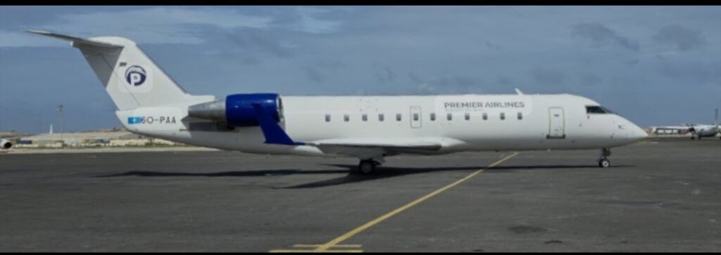 The Premier Airlines flight, registered 60-PAA, was greeted with a formal ceremony at Aden Adde International Airport, drawing cheers from officials and citizens alike.