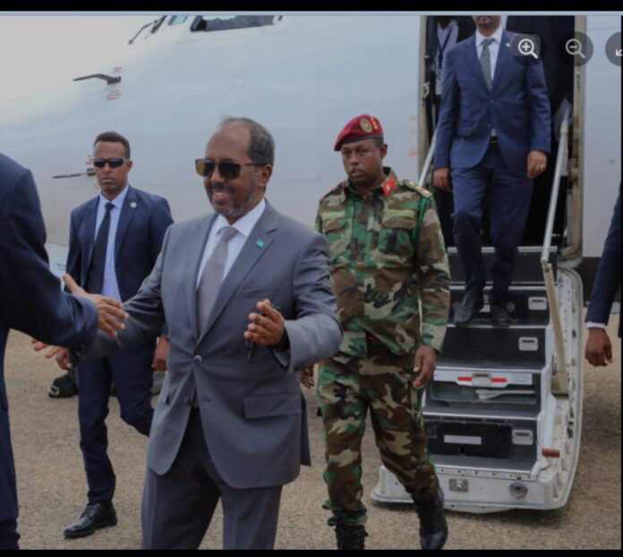 DHUSAMAREB – Somali President Hassan Sheikh Mohamud has arrived today in Dhusamareb, the capital of the Galmudug regional state, in a visit seen as a fresh push to re-energize the fight against Al-Shabaab militants.