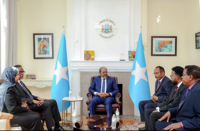 WASHINGTON, D.C, (HAN) – The President of the Federal Republic of Somalia, H.E. Hassan Sheikh Mohamud, paid an official visit to the Embassy of Somalia in the United States as part of his ongoing working trip to the country.