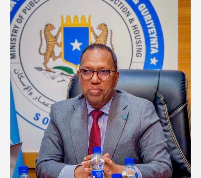 MOGADISHU, (HAN) – The Minister of Public Works, Reconstruction, and Housing of the Federal Government of Somalia, Dr. Elmi Mahamoud Nur, held an important meeting today with a delegation from the International Organization for Migration (IOM), focusing on strengthening cooperation in the areas of housing, reconstruction, and social services for Somali citizens.