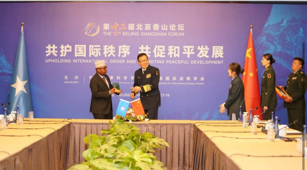 BEIGING, (HAN) – Somalia’s Minister of, Ahmed Moallim Fiqi, met with China’s Minister of National Defense, Admiral Dong Jun, in Beijing on the sidelines of the Xiangshan Forum, marking the first ministerial-level defense talks between the two nations in almost four decades. The meeting signals a new chapter in strategic relations between Somalia and China.