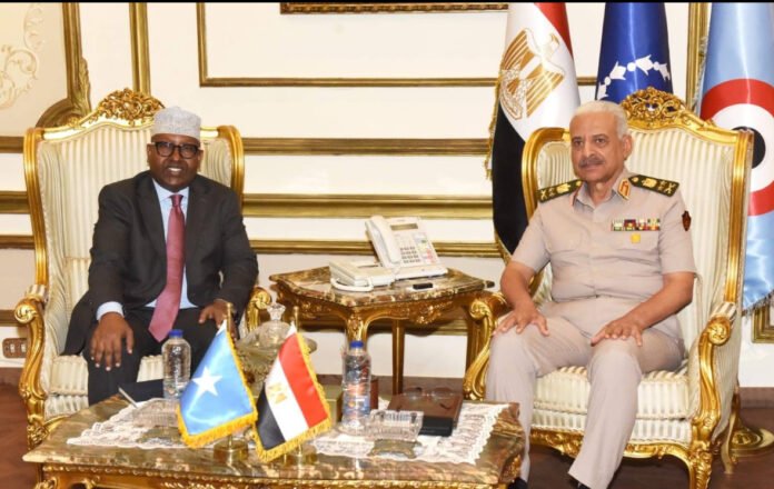 CAIRO, (HAN) – Somalia’s Minister of Defense, Ahmed Moalim Fiqi, met in Cairo this week with Egypt’s Minister of Defense and Commander of the Armed Forces, General Abdel Majeed Saqr, in a high-level meeting that included senior Egyptian military officials. The discussions focused on deepening military cooperation, enhancing regional security, and supporting peace-building efforts in the Horn of Africa.